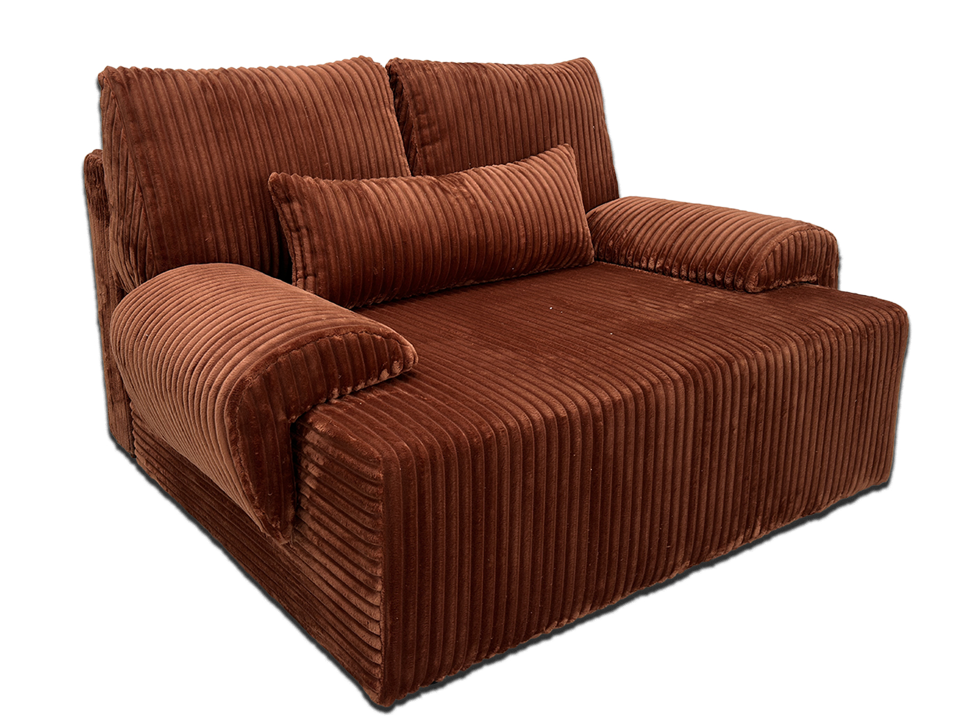 Chaleureux avec sa forme d’accoudoir large et arrondie, il a un coffre de rangement et est convertible avec un système tiroir.