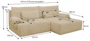 Malléable, il est aussi très spacieux avec une largeur total de 250 cm ! ou 270 cm avec les accoudoirs amovibles.