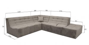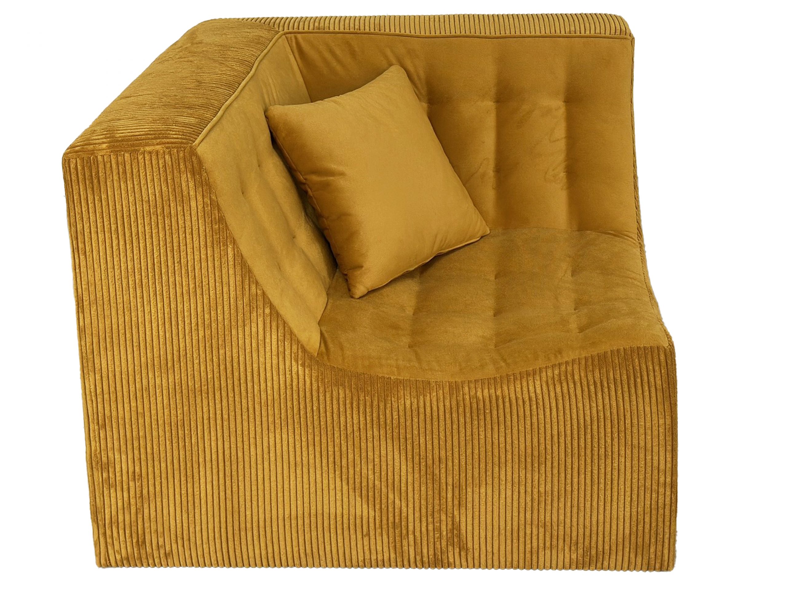 velours sur l’assise coordonnées à du velours grosses cotes sur les cotés .