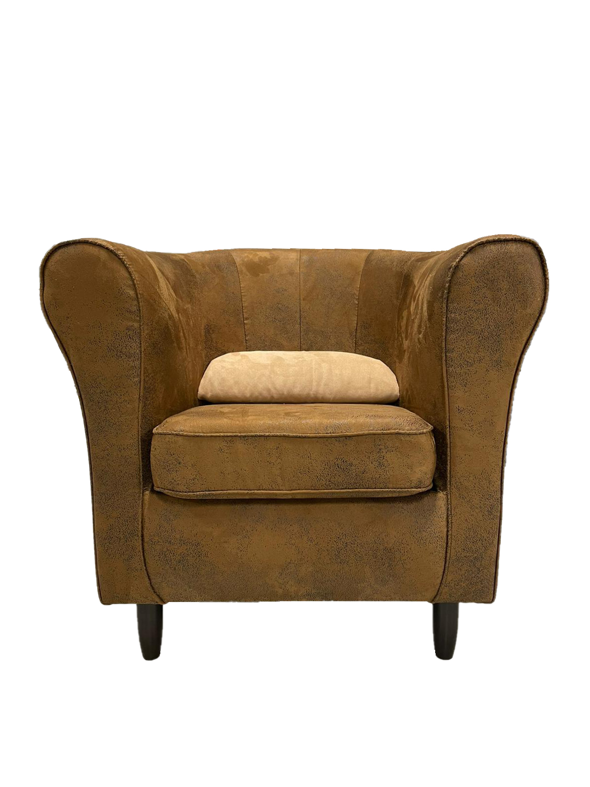 Rond, ce fauteuil offre une assise très englobante et ses accoudoirs maintiennent les épaules et les bras aisément.
